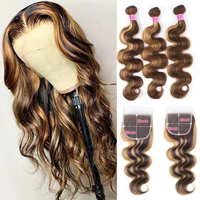 Highlight Body Wave Bundles 5×5 Lac...